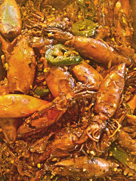 Sautéed squid with Onions and Jalapeño.